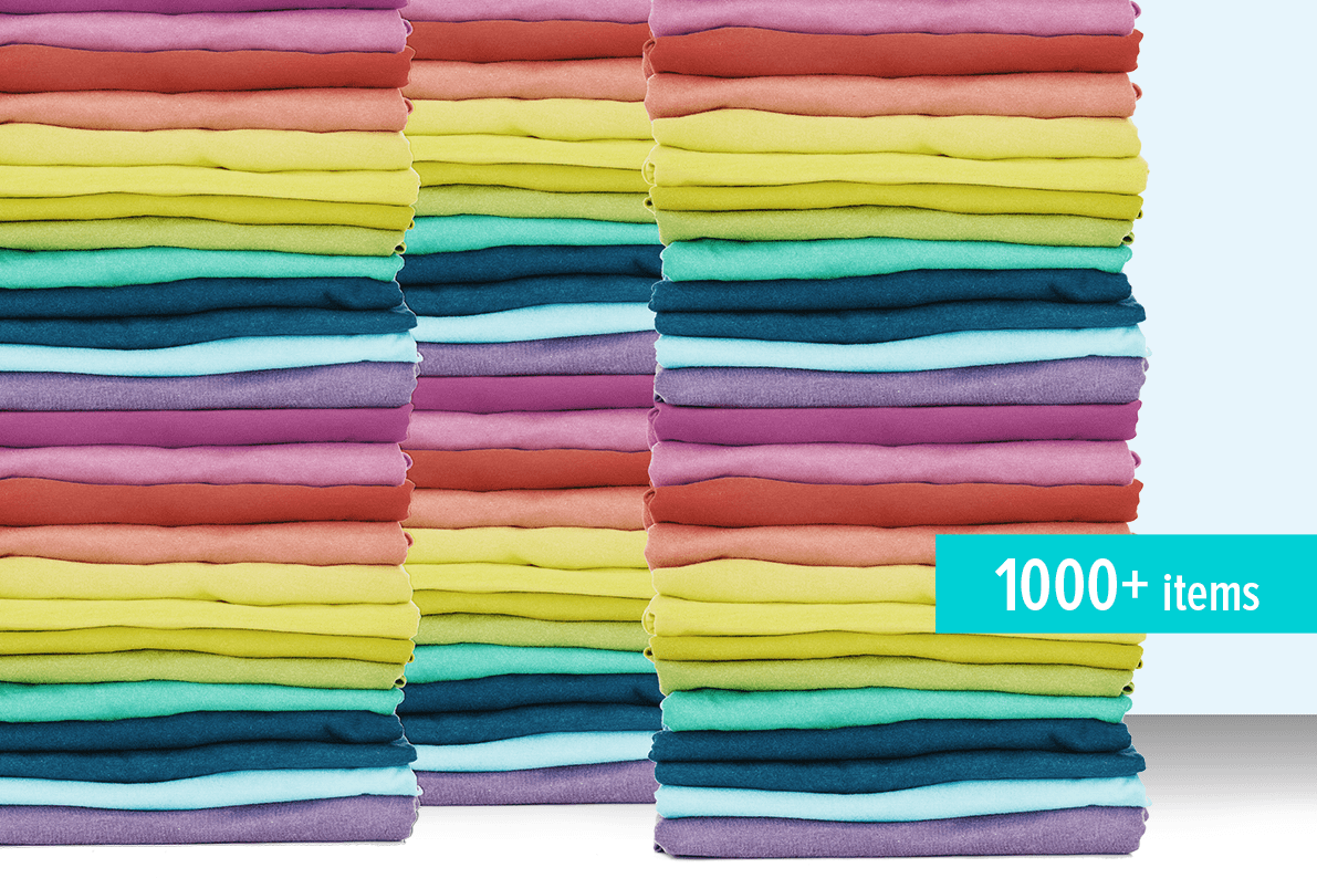 Requests above 250 items and up to 1000 garments simplify the printing and customisation process so your overall price per unit is scaled down the more items you order. This range is especially cost-efficient and fit for screen printing techniques. Also, after 500 units, cut & sew and mixing techniques starts to be a viable option.